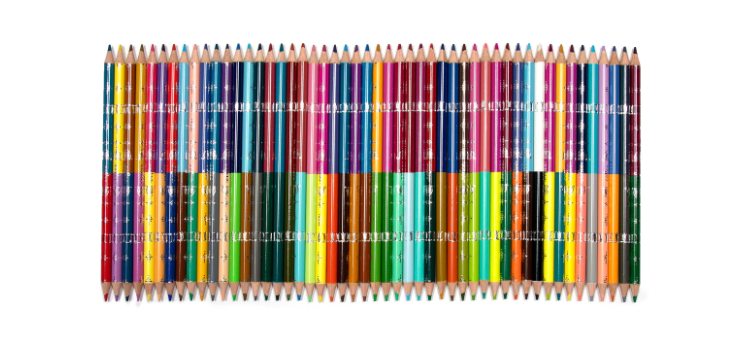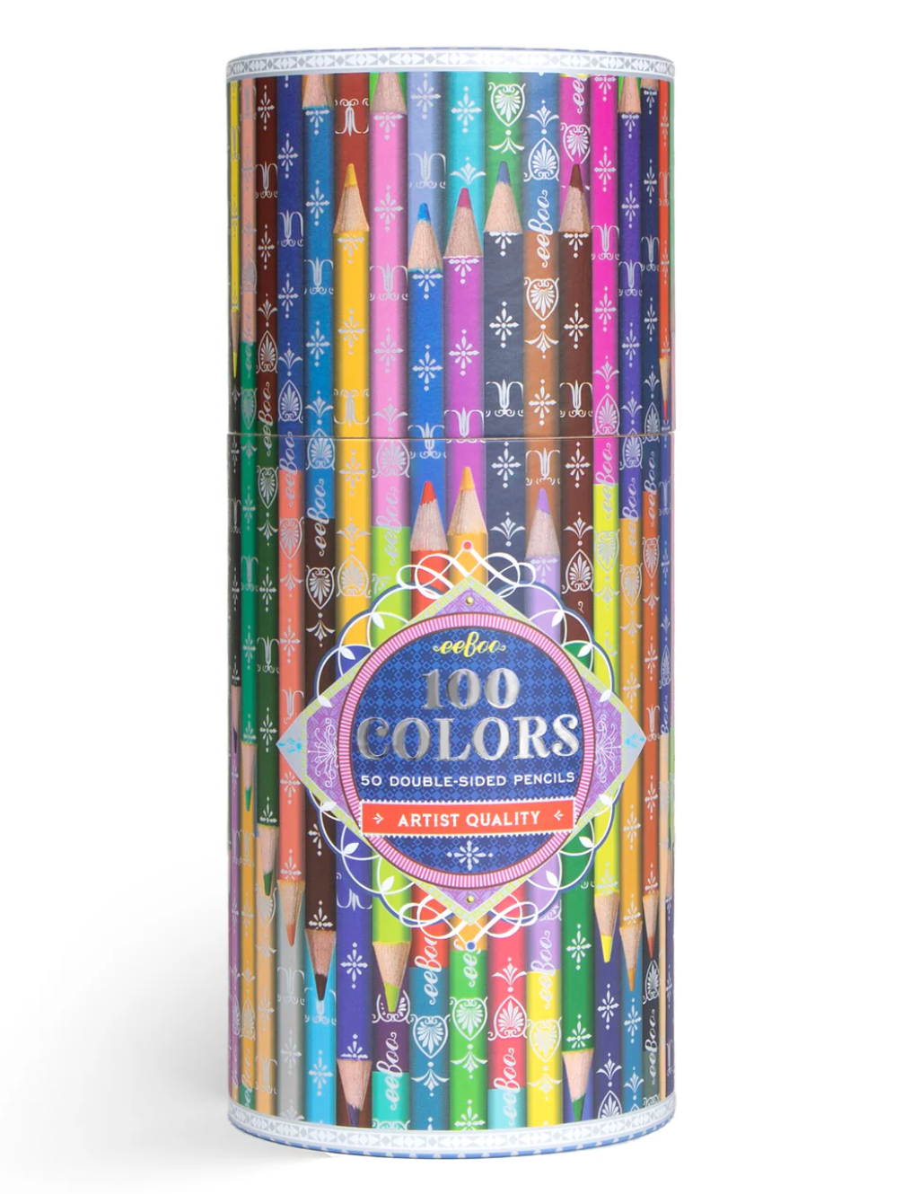 A full spectrum of creativity at your fingertips. 100 artist-quality colors, (50) double-sided colored pencils packaged in a foil stamped vibrant desk-top canister.