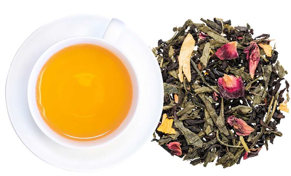 Green tea, Black tea, flavor, rose petals, marigold blossoms.