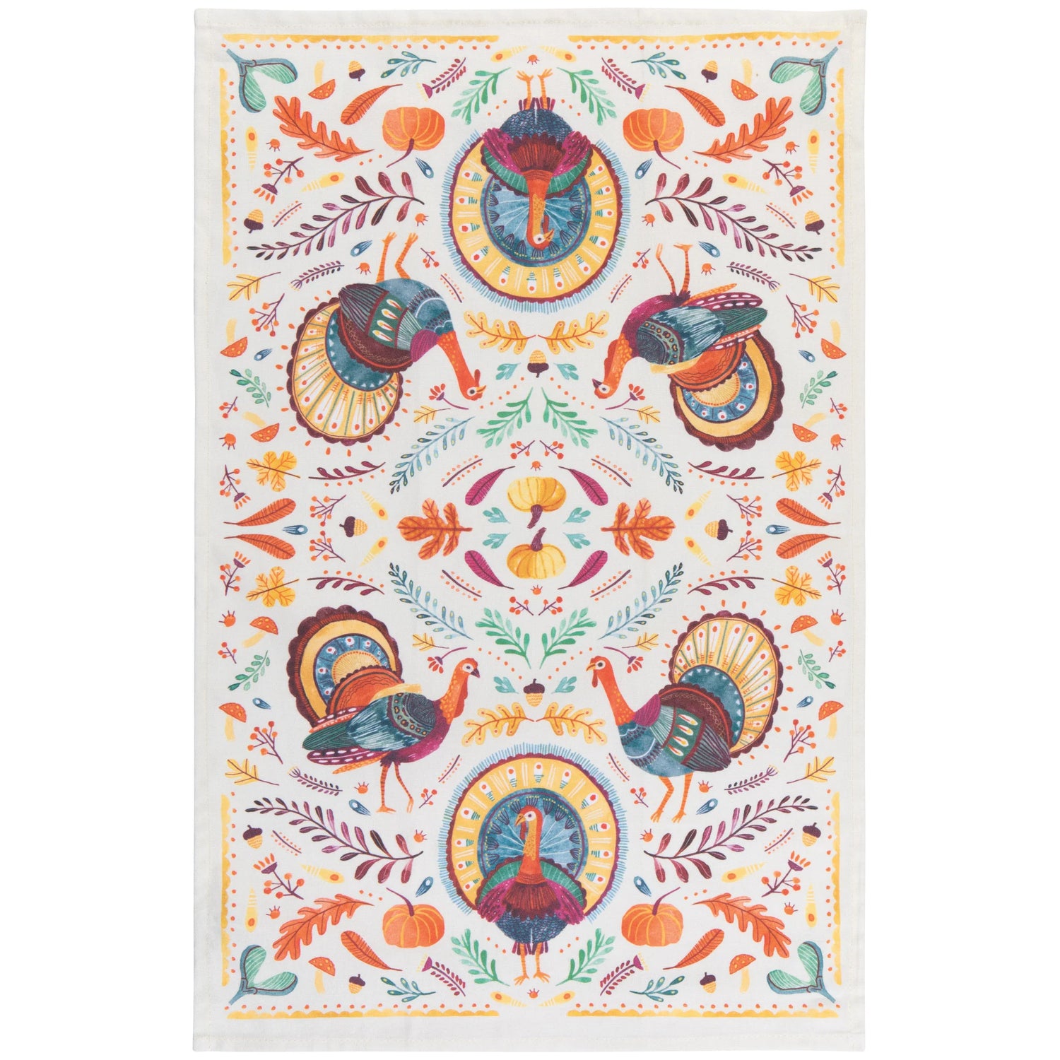 Add life and character to your kitchen with our fun and colorful printed and woven cotton Autumn Plenty dishtowel. A perfect combination of form and function, this towel will make washing up less of a chore. Plump pumpkins, rotund turkeys, and fall foliage flow colorfully across the surface of this collection, exuding gratitude for Autumn’s offerings.