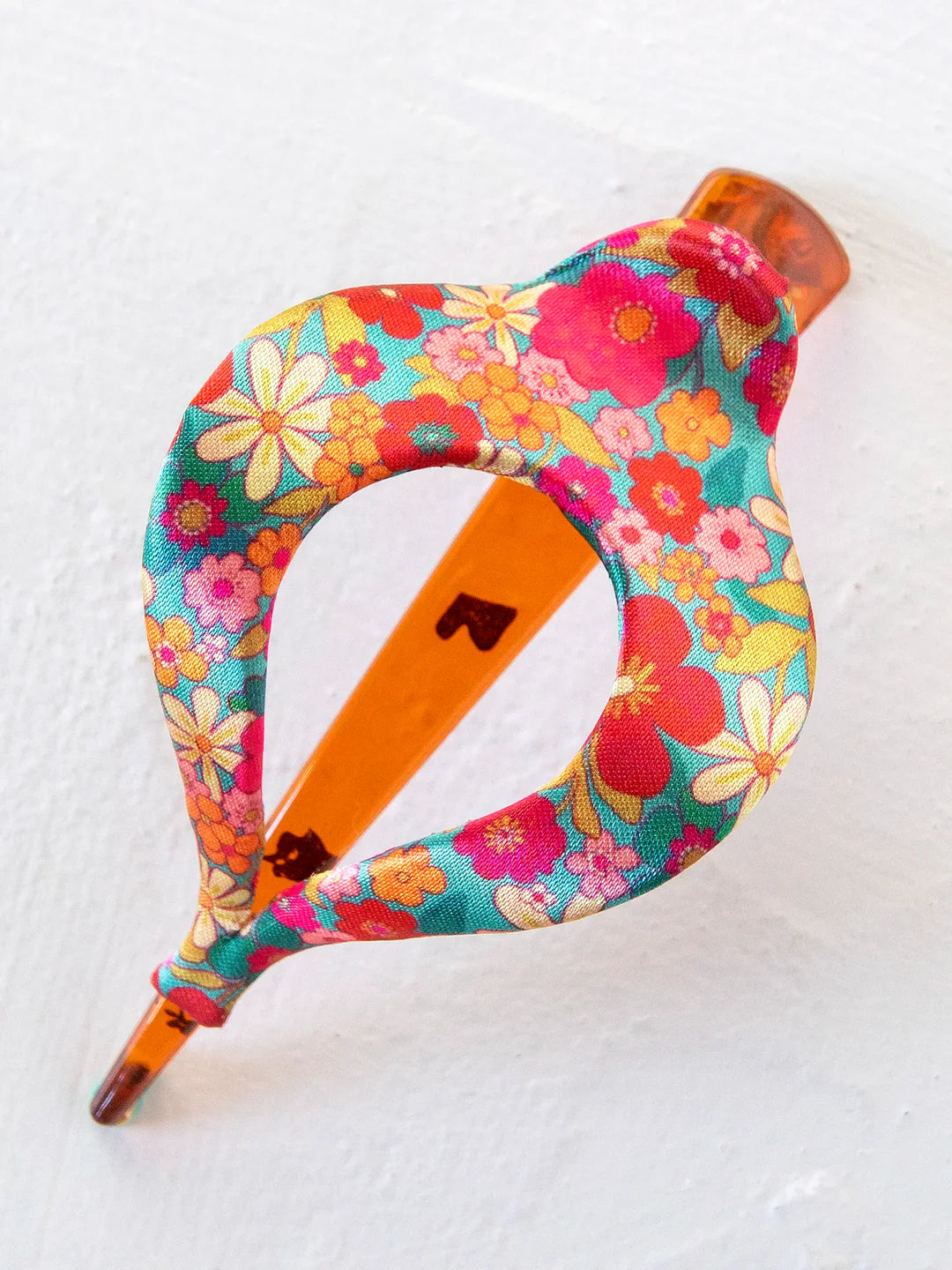 The cute vintage prints and fun design! Tortoise clip wrapped in printed fabric