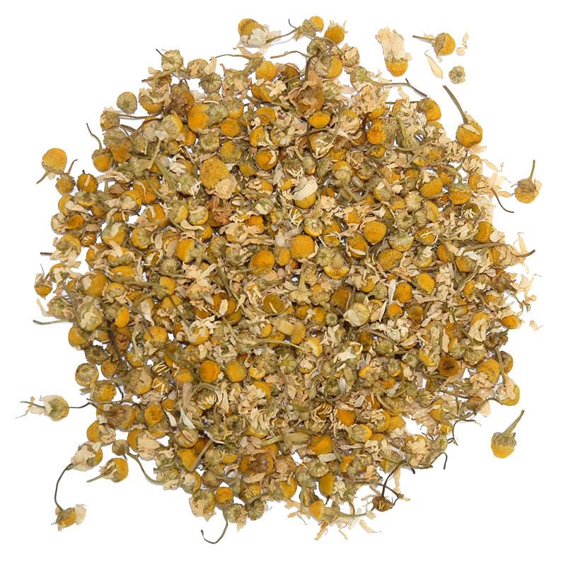 A mild herbal tea made from whole chamomile flowers, which are carefully processed so that they retain their typical tart, floral character.