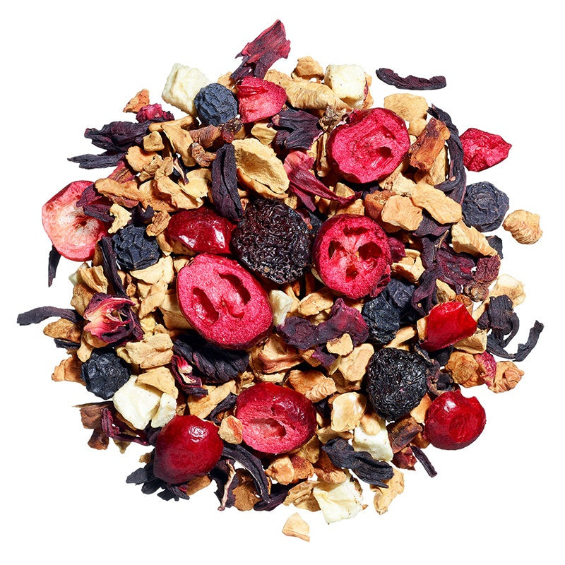 Ingredients: Apple pieces, blackthorn, hibiscus, cherry pieces (7%), pineapple pieces (pineapple, sugar), flavorings, cranberry slices