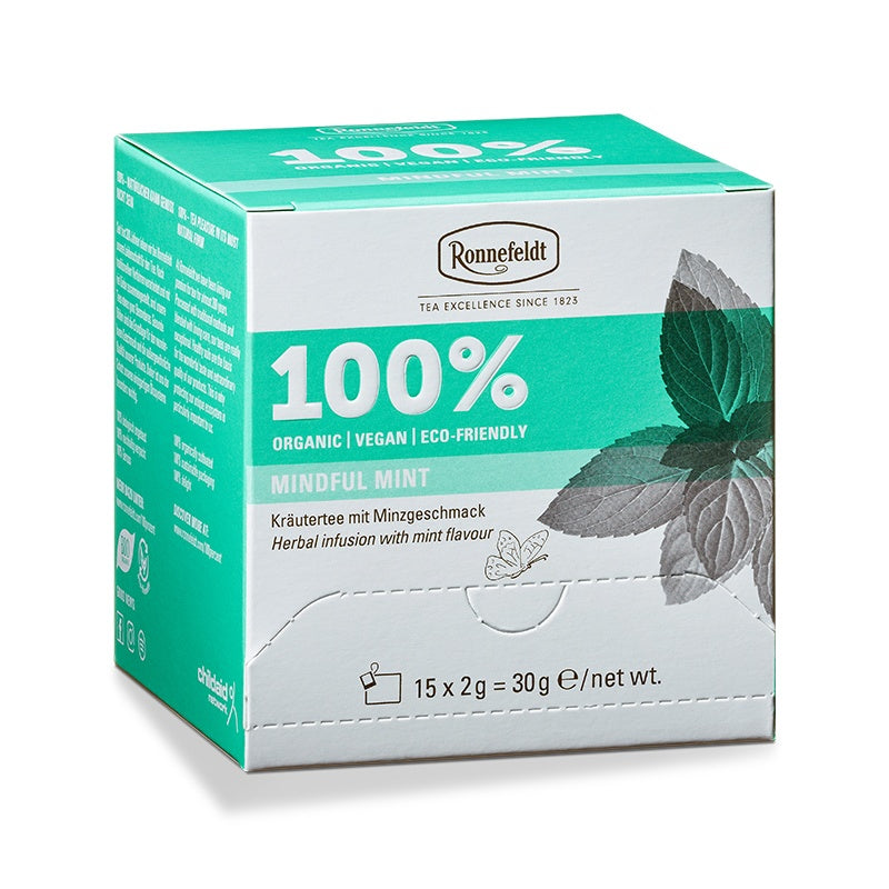 100% Mindful Mint Herbal tea with mint flavor A refreshing symphony of three kinds of mint invigorates body and mind. Mindful Mint captivates with the mild and at the same time sweet taste of the Moroccan nana mint. This herbal composition gets a special freshness from the spearmint, also known as spearmint. The pleasure experience is rounded off by the subtle spiciness of the peppermint. Mint gardens are often a natural habitat for butterflies such as peacock butterfly and monarch butterfly. These insects also feel at home in areas where herbs are grown organically.