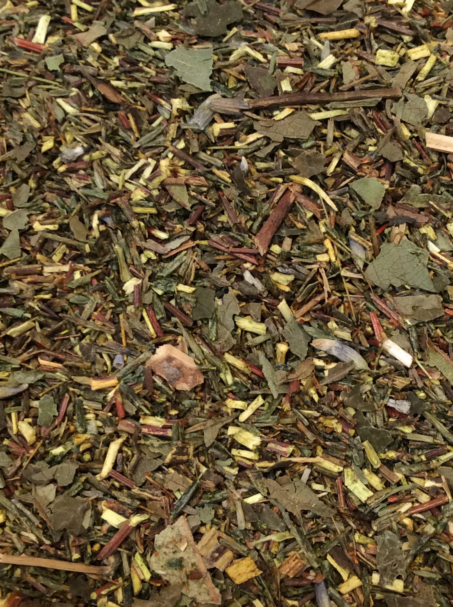 Ingredients: green rooibos, lemon myrtle, sweet blackberry leaves, thyme (3%), lavender flowers (2%)