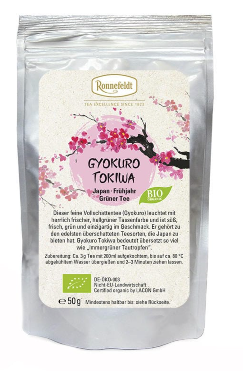 Gyokuro Tokiwa Organic by Ronnefeldt - A classic green tea of organic quality with a brewing time of 2-3 minutes Please, always follow the recommended water temperature and brewing time to get a safe nourishment.