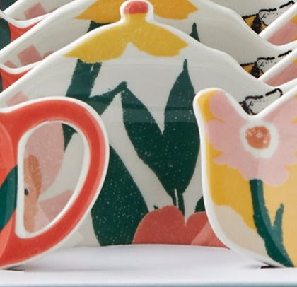 say goodbye to stained surfaces with our new bee blossom teabag holders. these adorable teapot-shaped ceramic dishes are the perfect size for holding your teabag after steeping. sculpted with an organic edge and decorated with a colorful decal.