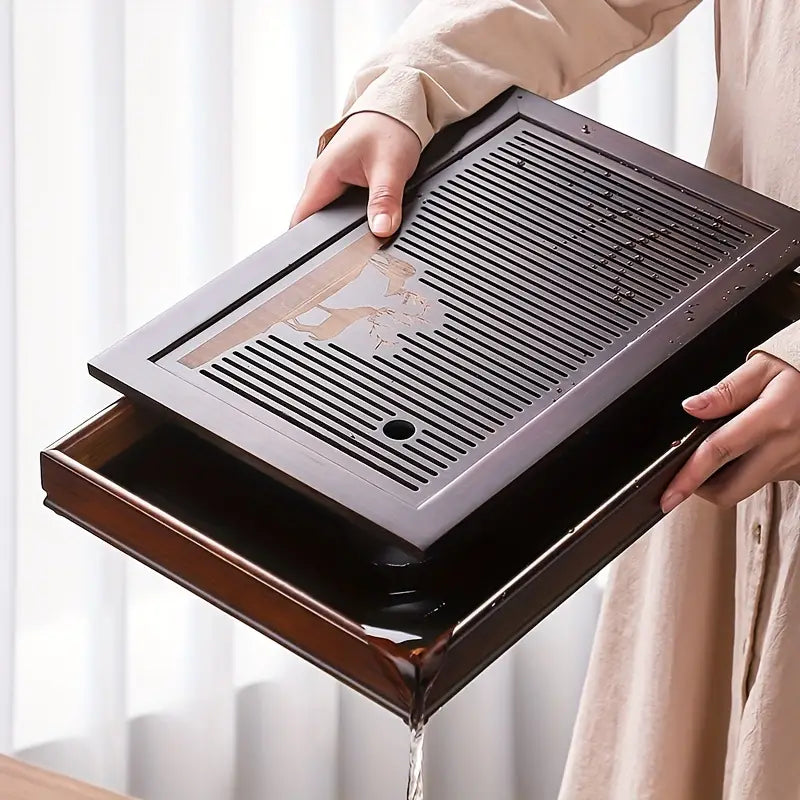 1 Pc, 30 Cm/11.8 In Tea Tray, Household Solid Wood Bamboo Small Tea Tray Tea Table Tea Set Modern And Simple Water Storage Dry Foam Tray, Teaware Accessories