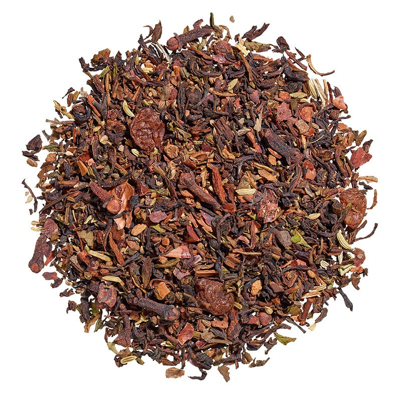 Gingerbread Ingredients: Black tea (45%), cinnamon pieces (16%), cocoa shell (10%), anise (6%), cloves, fennel, sultanas, blackberry leaves, aromas