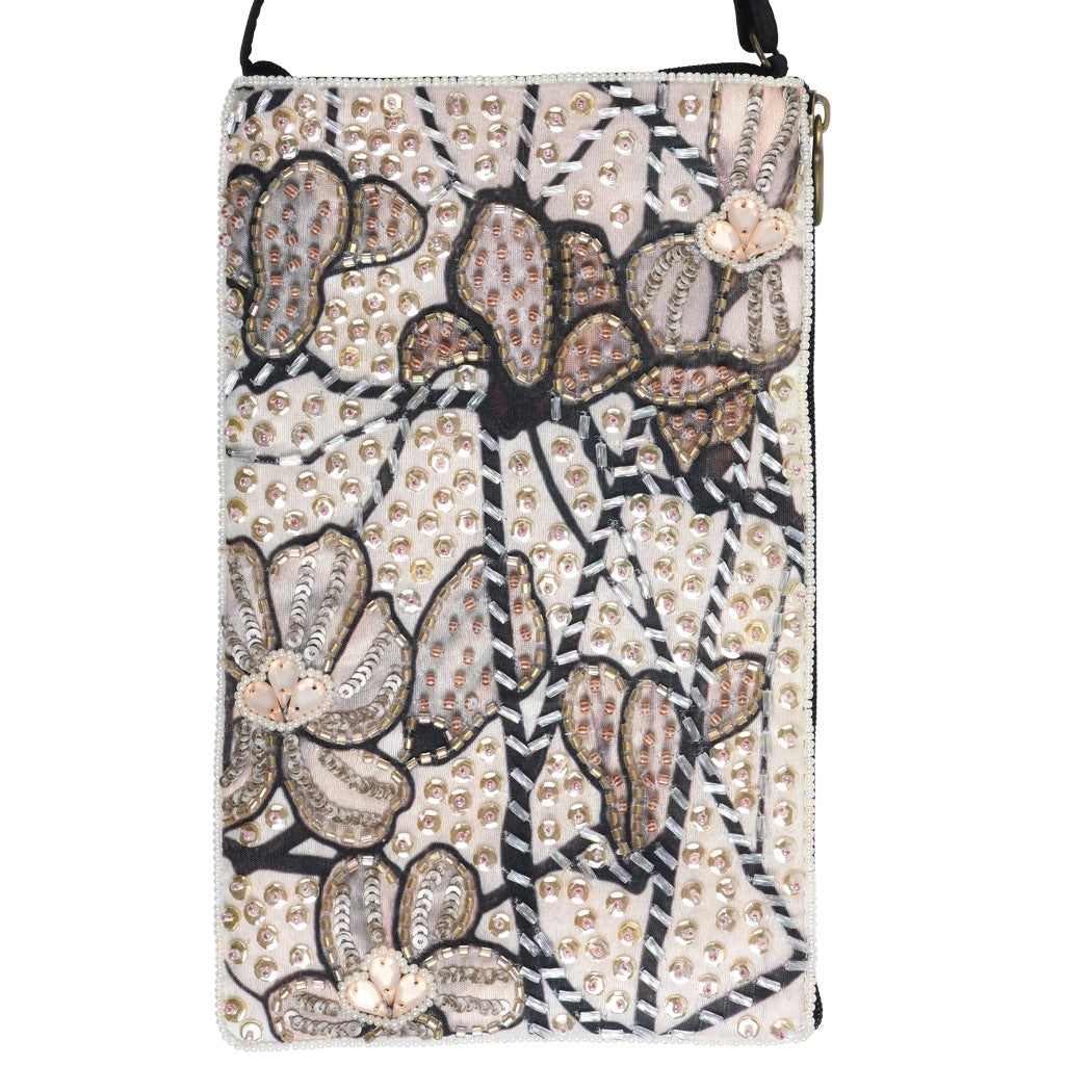 Hand beaded by artisans in India, this versatile smart phone bag can be worn cross body or as a wristlet. Includes 54" cross body strap that can tuck inside when not in use, a short strap that unsnaps so the bag can be attached to a larger bag or belt, and a separate, secure side zip pocket for cash and credit cards.