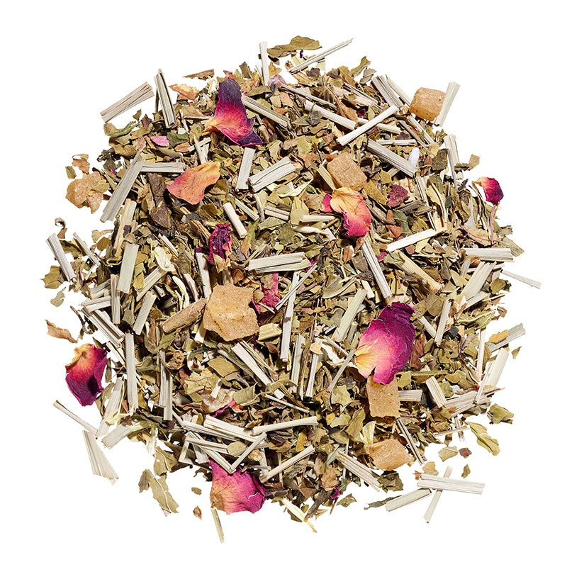 Ingredients: green mate (22%), peppermint leaves (22%), lemongrass, nettle leaves, green tea (8%), pineapple pieces (pineapple, sugar) (4%), dandelion leaves, aroma, rose blossoms, marigold blossoms, blue mallow blossoms Preparation recommendation