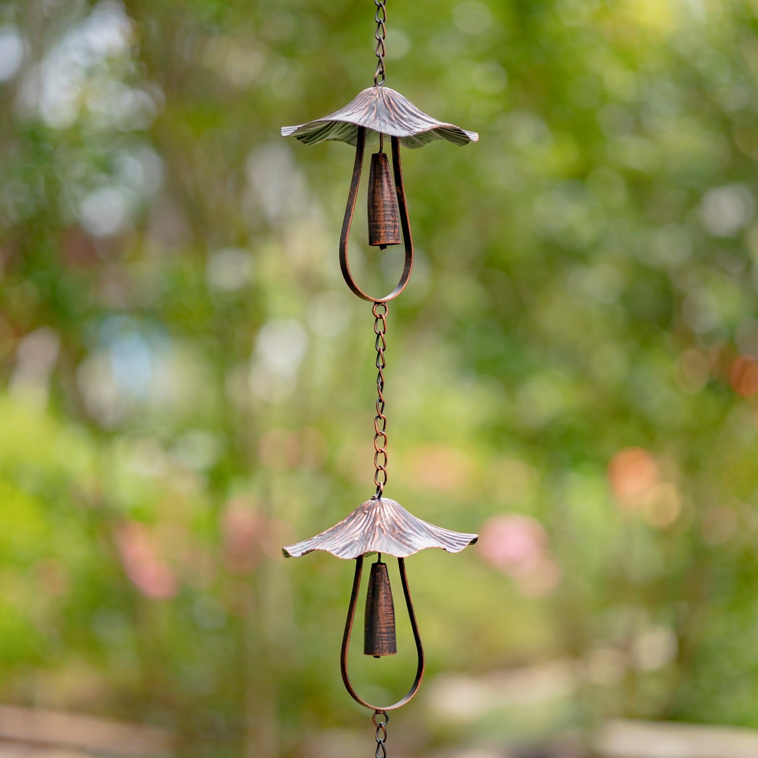 Rain chains are the must-have trending product when it comes to home and garden decor this season. Our iron crafted rain chains are as functional as they are beautiful. Each piece is skillfully crafted from high quality metal and powder coated for extra protection against outdoor elements. Their hand painted Antique Bronze brush-stroke finish makes each chain unique. Hang from your roof or patio and next time it rains, listen to the soothing sounds they emit as the water trickles down each piece.