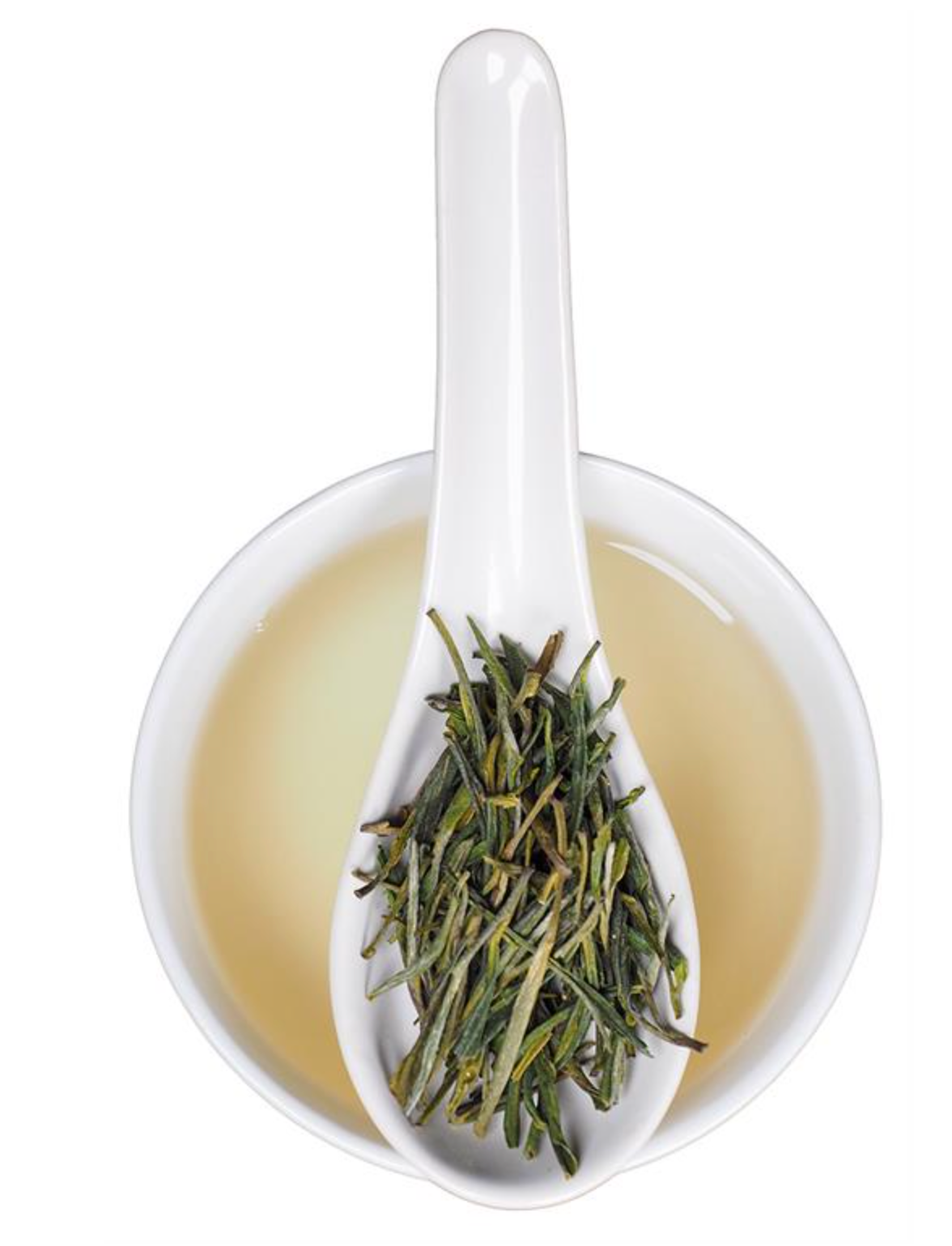 This tea from the high mountain Da Hua Ping Tea Garden in Anhui Province is plucked in early April and then manufactured in the style of a green tea except that the leaves are covered prior to complete drying in order to produce a slightly yellow tone leaf set.