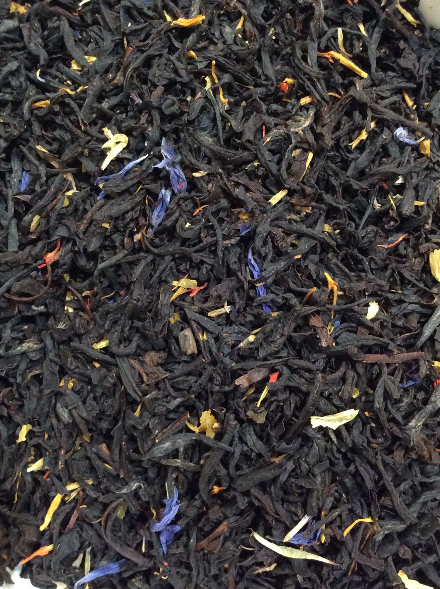 Ingredients: black tea, flavors, safflower, cornflower, marigold flowers