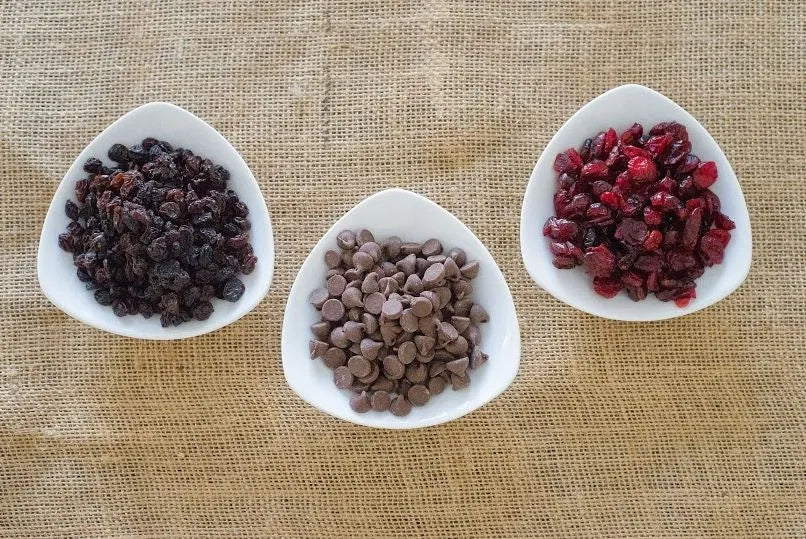 Add flavorings (Chocolate Chips, Cranberries or Currants) and some nuts if you like and stir. In a small bowl, whisk egg and milk together. Add egg mixture to dry mix and form a ball. Dough should not be wet. You may not need all the liquid.
