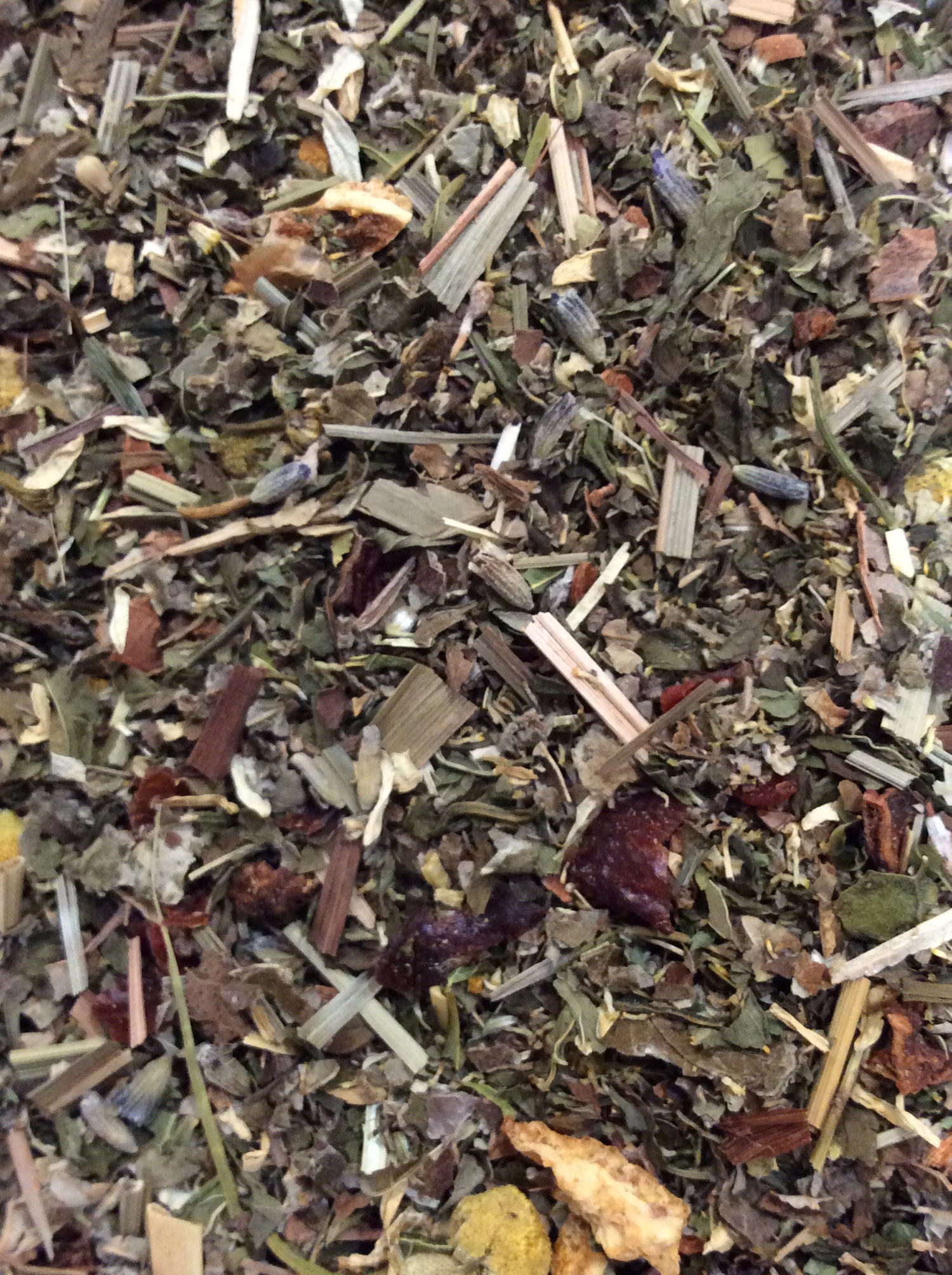 With chamomile, rosehips, raspberry, papaya, blackberry leaf, peppermint, spearmint, passion flower, red clover, anise, wild cherry bark, lemon, wintergreen, lavender, stevia, flavor.