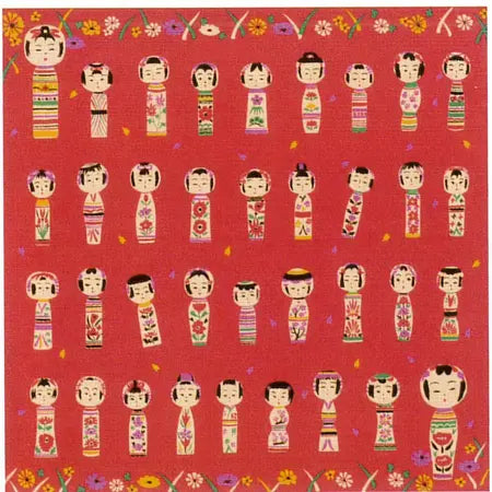 Furoshiki Kokeshi Dolls 19.75" square