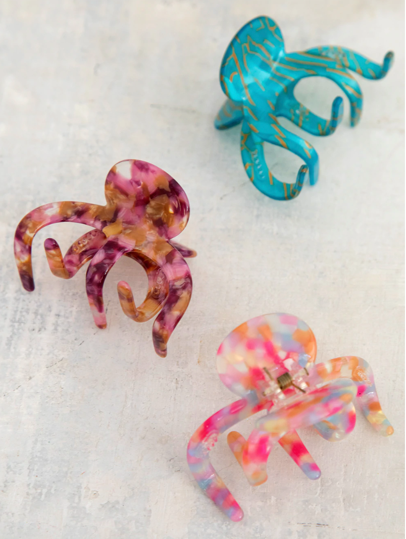 Made for the best of hair days! This octopus-shaped hair clip is the perfect hair accessory to just throw in and go! It’s so pretty and looks so cute twisted up in a bun or for half-up, half down looks!