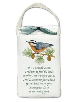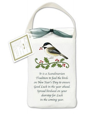 Quote reads: "It is a Scandinavian Tradition to feed the birds on New Year’s Day to ensure Good Luck in the year ahead. Spread birdseed on your doorstep for Luck in the coming year."