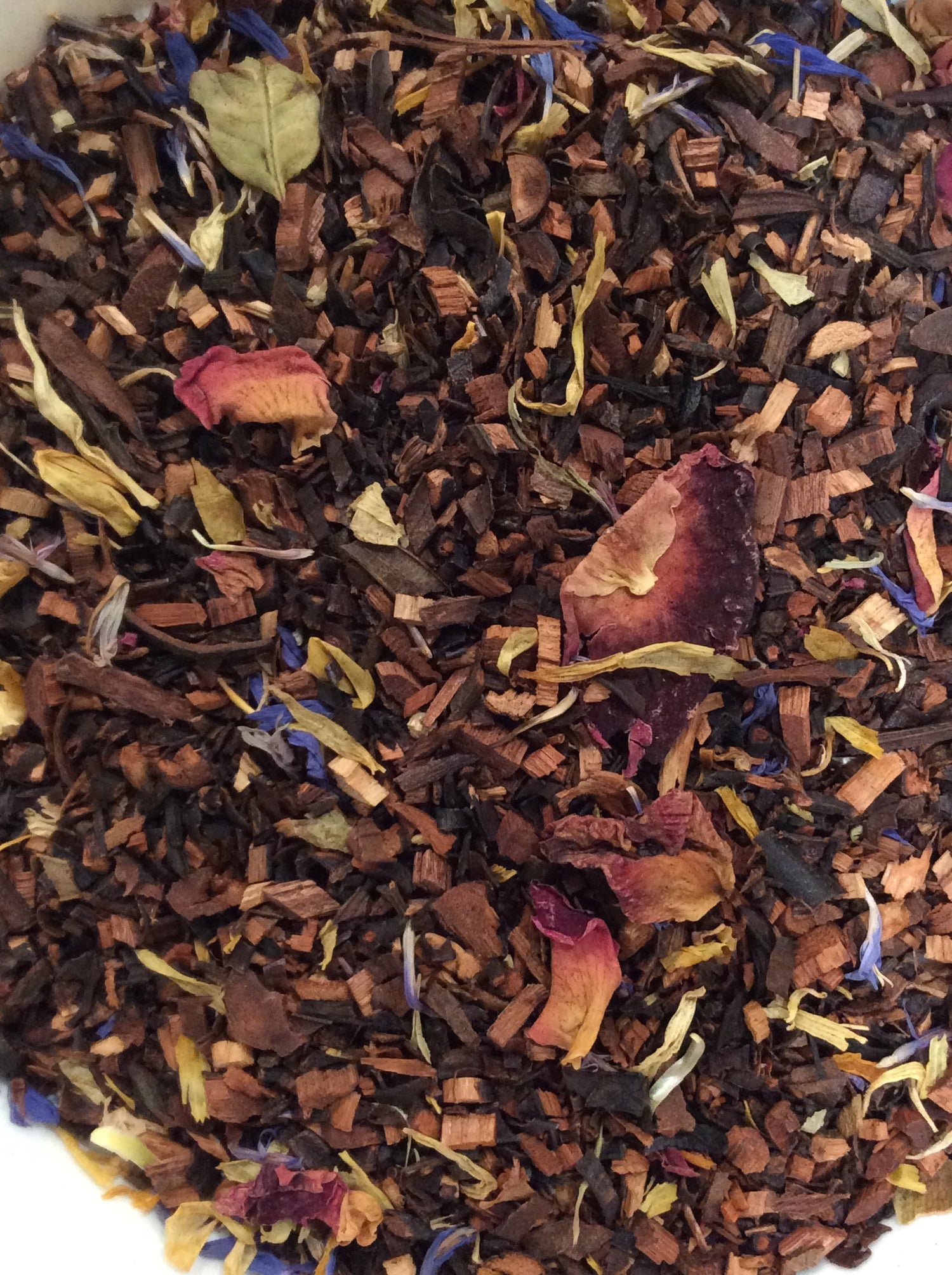 Ingredients: Honeybush (93%), aromas, rose, marigold, cornflower blossoms