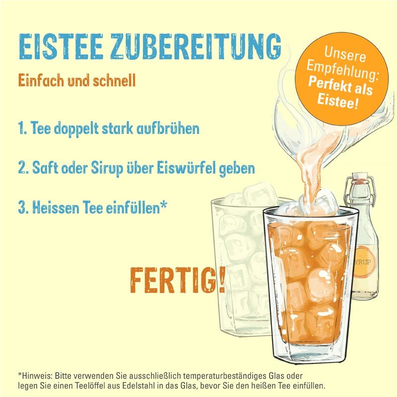 Always pour boiling water over the tea and let it steep for at least 8 minutes! This is the only way to obtain safe and tasty food.