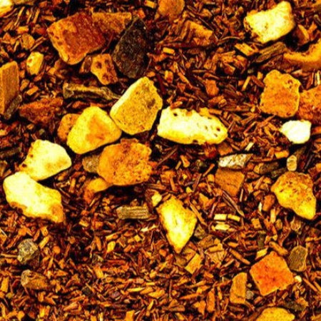 Here is that spicy, deep blend you crave! Gourmet rooibos herbal tea with cinnamon, orange peel, cloves and natural flavors.
