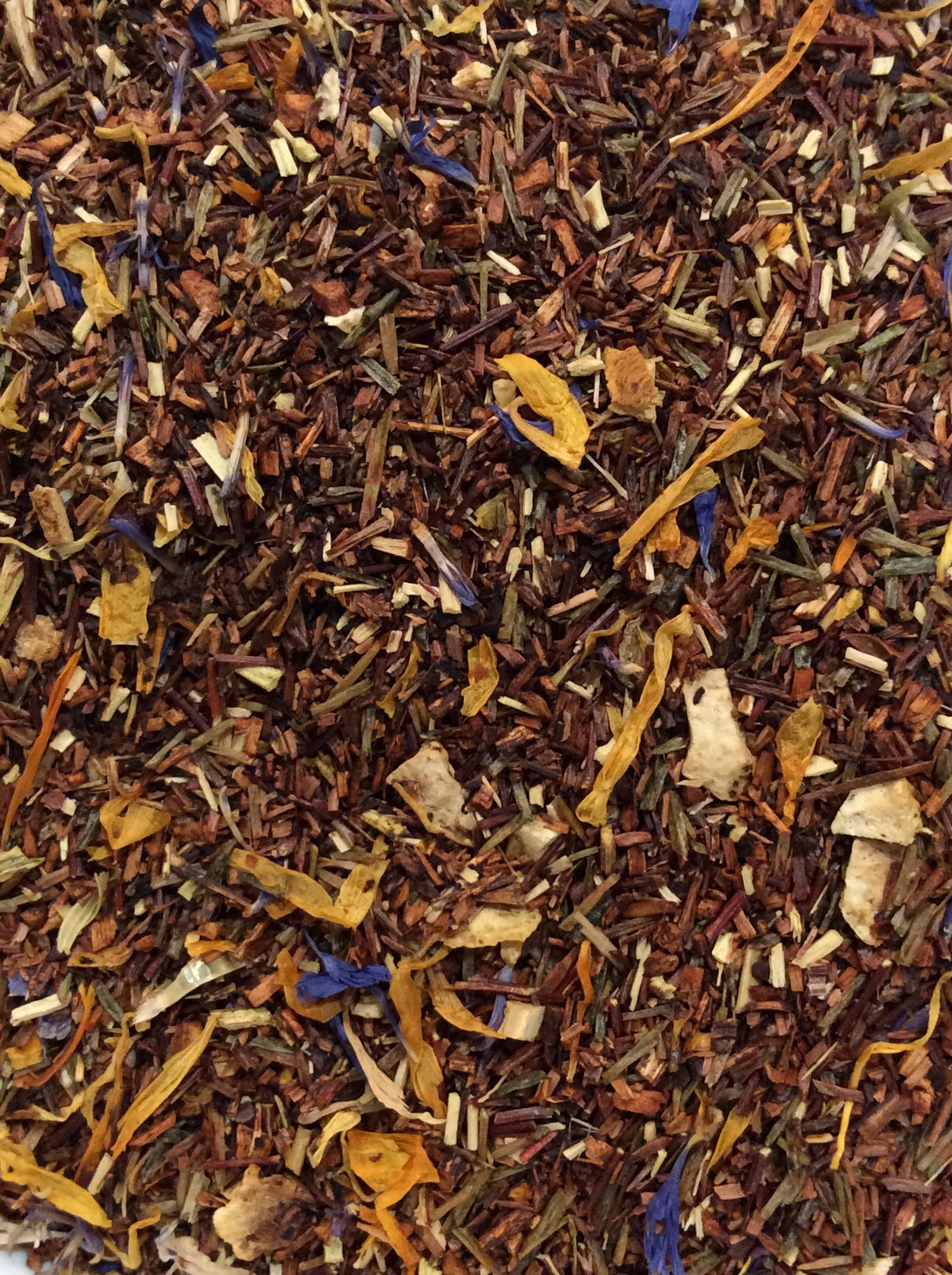 Lemon Soufflé is a fragrant, sweet, and comforting blend of rooibos, honey bush, and lemon cream taste with lemon bits. Good hot or iced. Delicious anytime of the day.