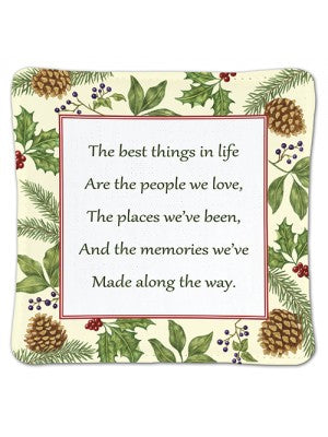 Filled with real spices for a long lasting scent. Place a warm tea or coffee mug on the mat to release scent. Protects table tops and are perfect for the home or office. Machine washable. Size 5" x 5". Packaged in clear cellophane with header.