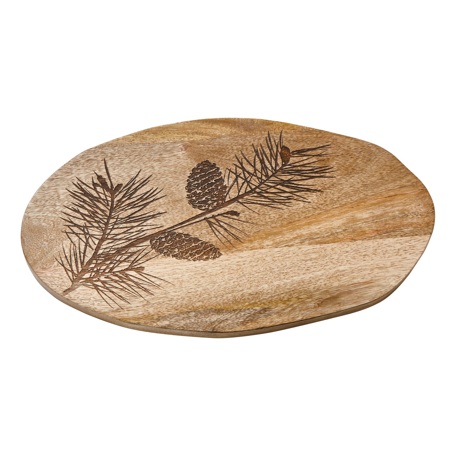 great for entertaining, this handcrafted mango wood board is completely unique. each sustainable wood board features an etched design and is food-safe.