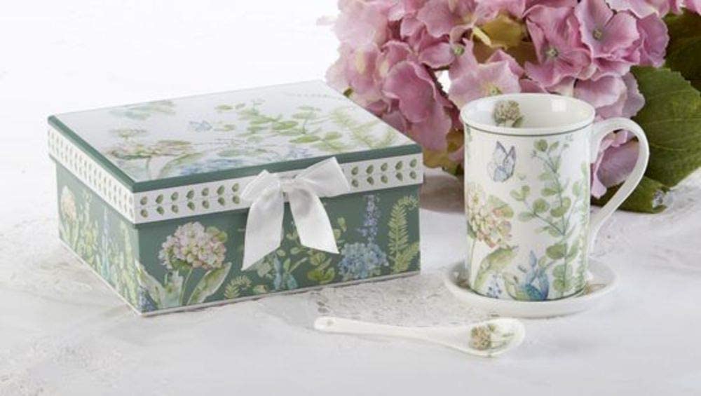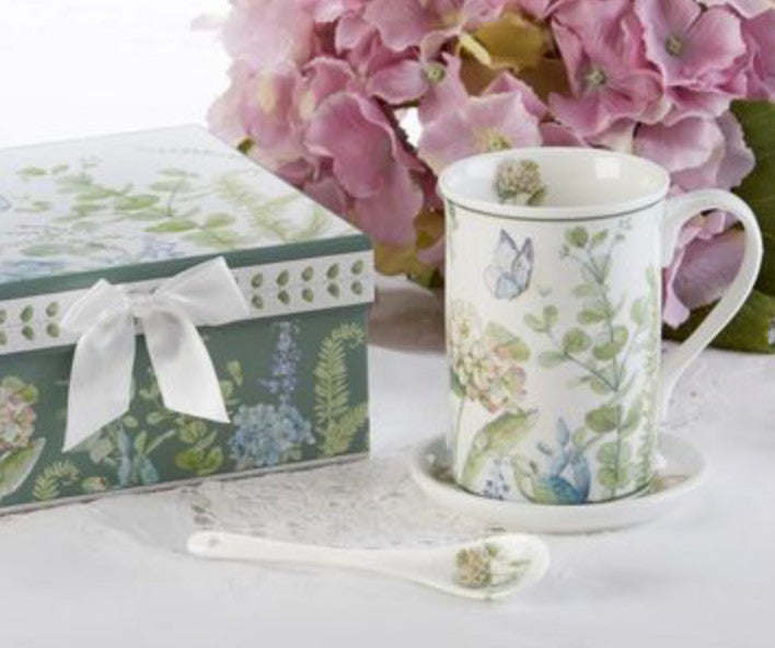 8152-4 Mug-Coaster-Spoon Set, Hydrangea