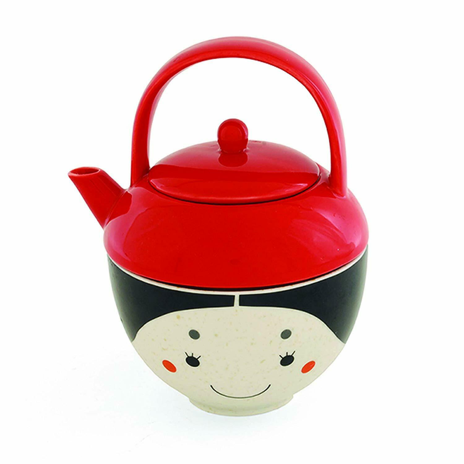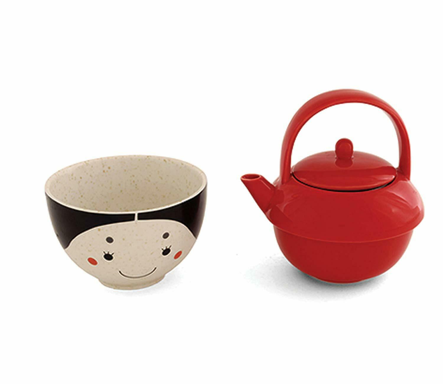 Teapot and Rice Bowl Gift Set, 12-Ounces Red/Black Miya Ochazuke Girl