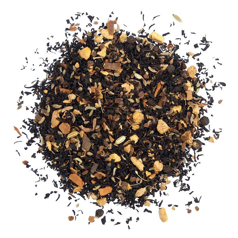 Black tea (47%), ginger, anise, black peppercorns, clove, cinnamon pieces, fennel