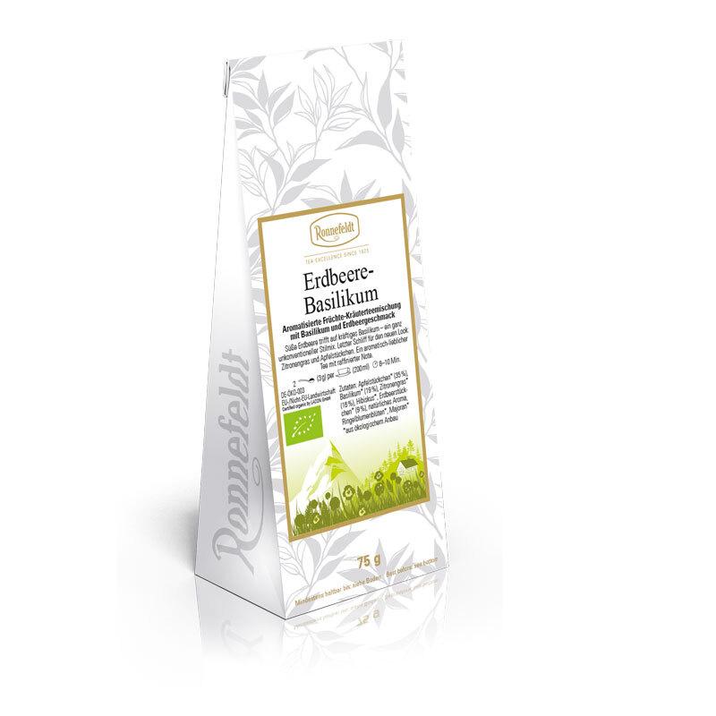 Flavored fruit and herbal tea blend with basil and strawberry flavor Sweet strawberry meets strong basil - a very unconventional mix of styles. The finishing touches for the new look: lemongrass and apple pieces. An aromatic, lovely tea with a sophisticated note.