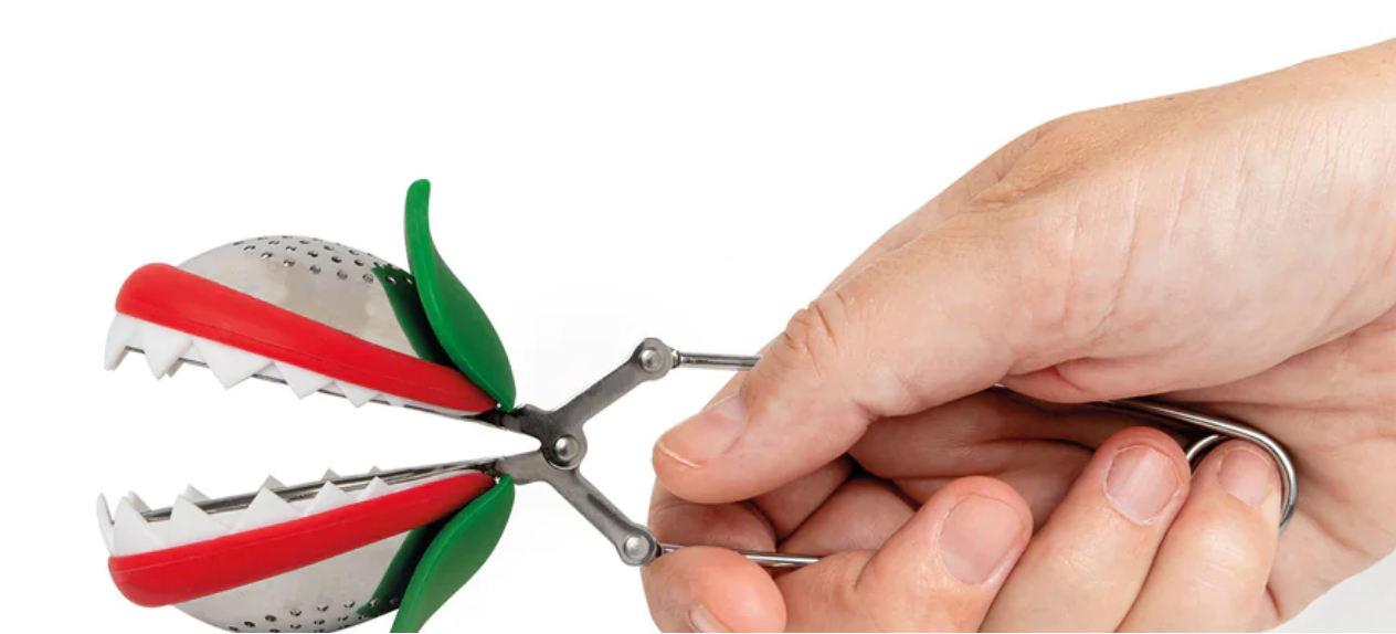 Tea Trap will brew your tea with the utmost care! Watch it snap shut on your leaves with attitude to spare.