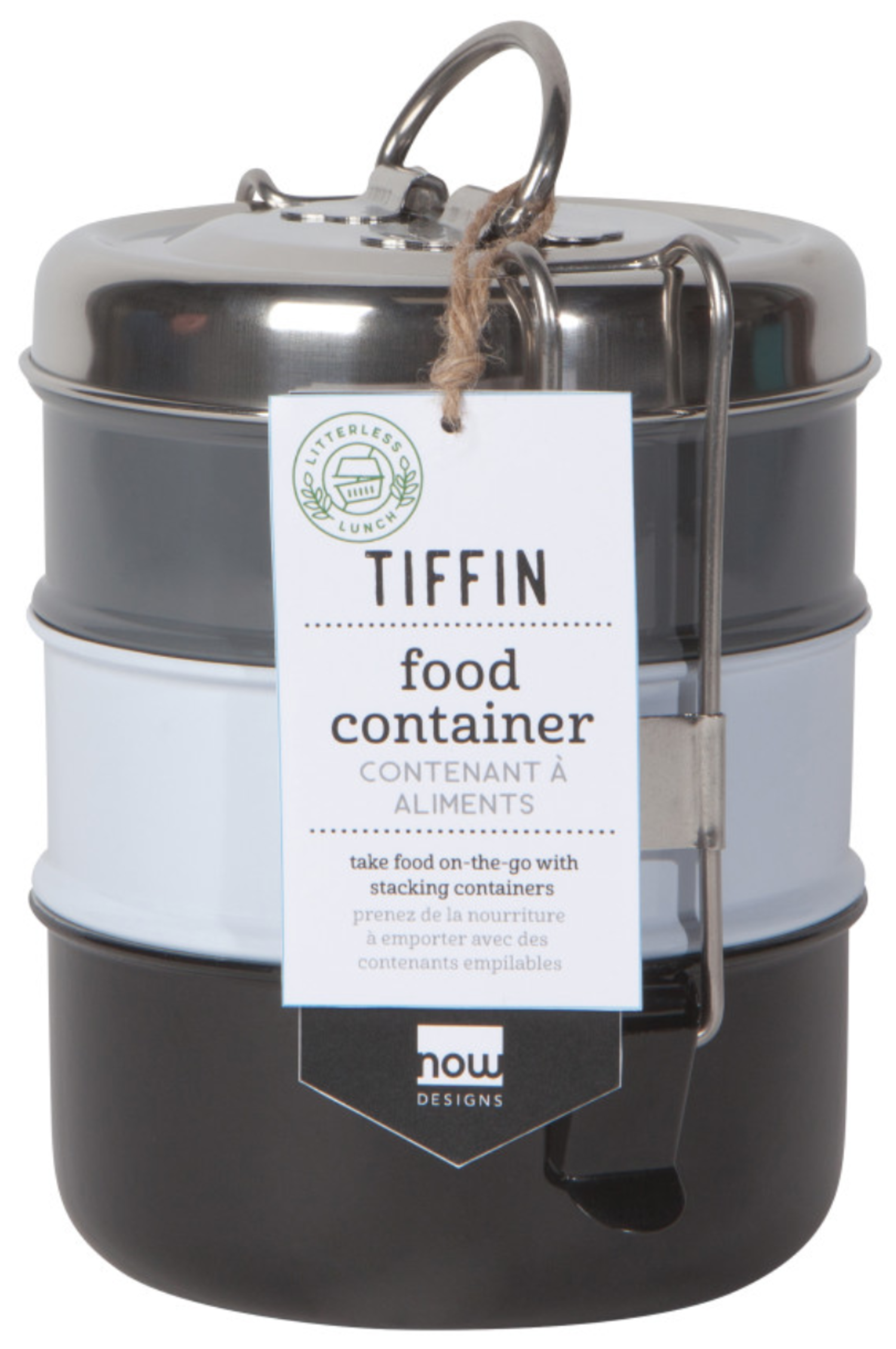 Originally used to pack up a homemade meal for transport through the busy streets of India, the tiffin is made up of three stainless steel containers that stack together. A snap closure keeps contents secure while a handle makes carrying convenient.