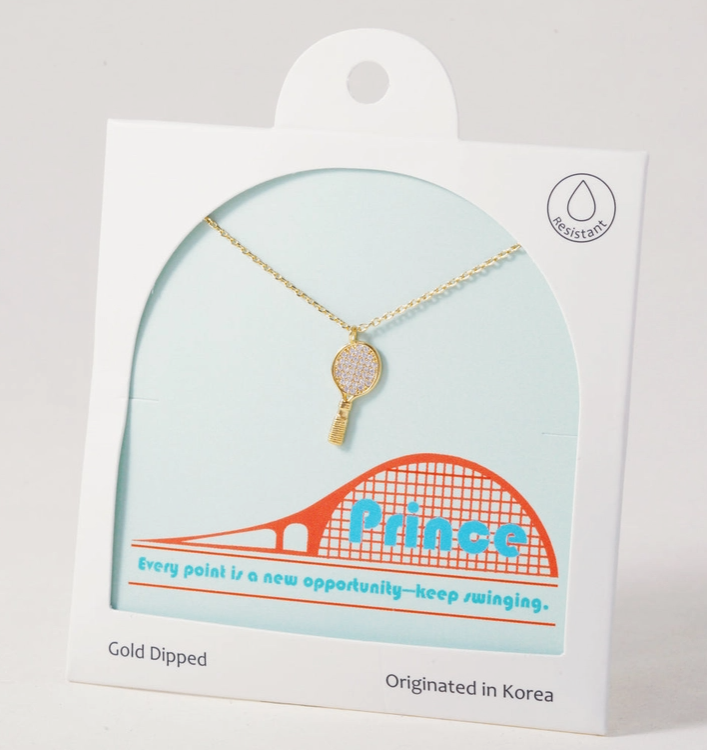 Hit every point in style with the Ace It Tennis Racket Necklace! This necklace is a perfect piece for those who find their joy on the court. Light and lovely, it’s an everyday statement for champions who never quit. 18K gold dipped, this necklace offers high quality and a refined finish that complements any style effortlessly. With an adjustable chain for a customized fit and a sleek, polished look, it’s the perfect accessory for any occasion.