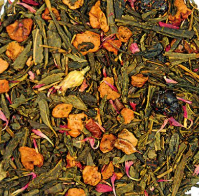 Ingredients: Green tea (69%), Apple Pieces (11%)currants, flavors, Vanilla pieces (2%), Red Cornflowers blossoms